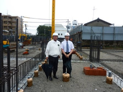 雨天ではありましたが先の地鎮祭においてお払いを受けた鎮め物の埋設が武道館中心の地点に理事長の手で行われました。